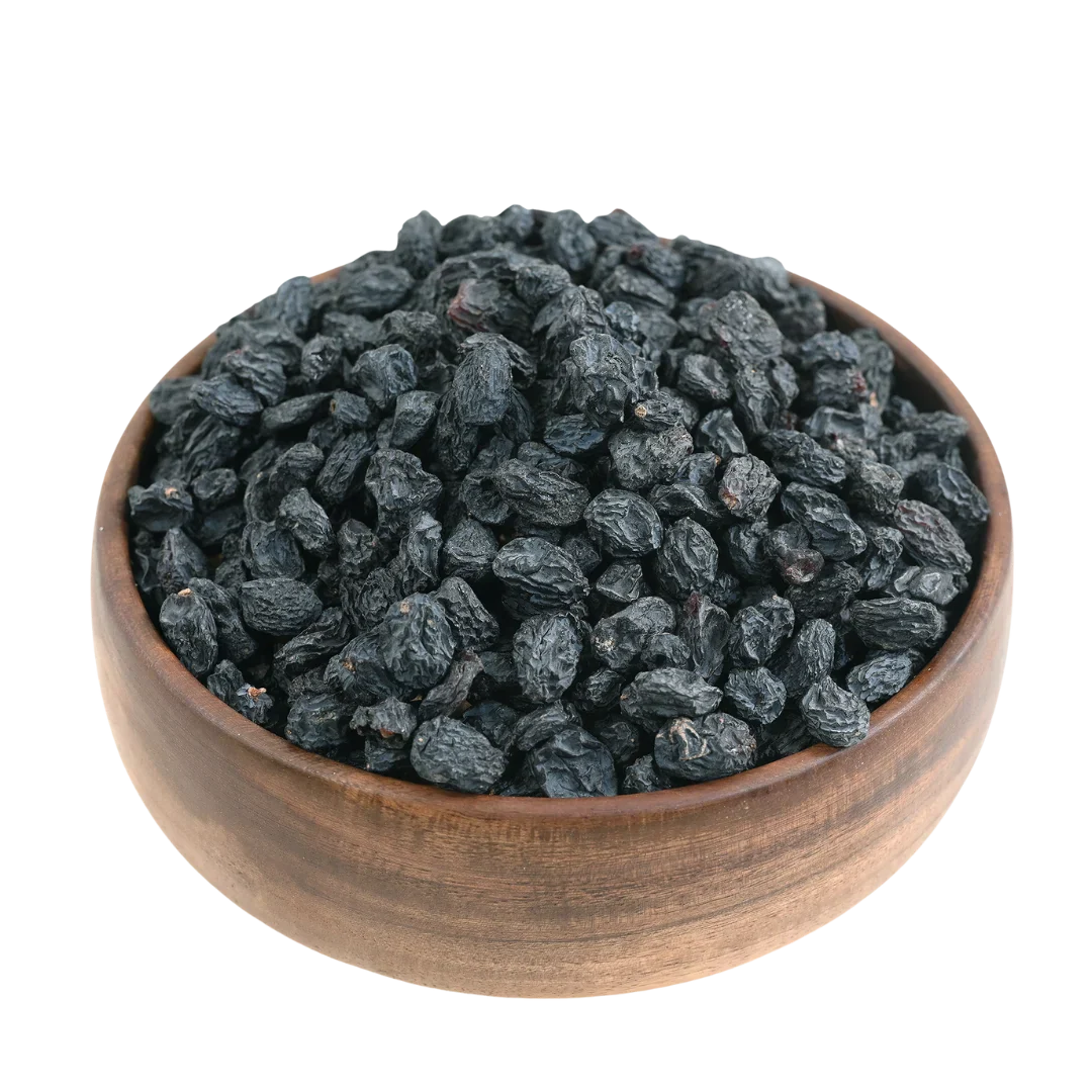 Black raisins are dried black grapes, also called Kali Draksh in India. They are naturally sweet, chewy, and a popular dry fruit for snacking, cooking, and desserts.